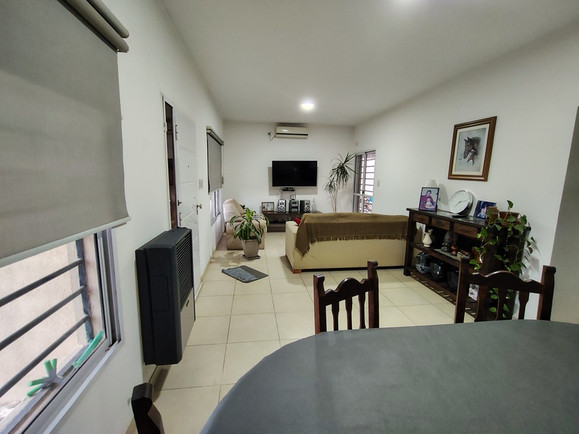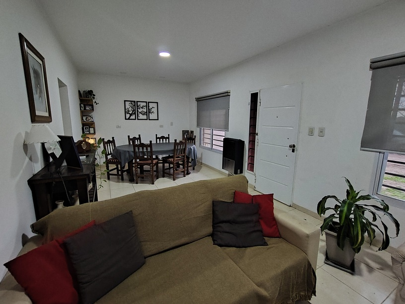 Living y comedor integrados de medidas amplias, dormitorio principal con baño en suite, dormitorio secundario con baño en pasillo, cocina, lavadero, galería, entrada para vehículo y gran parque con pérgola.