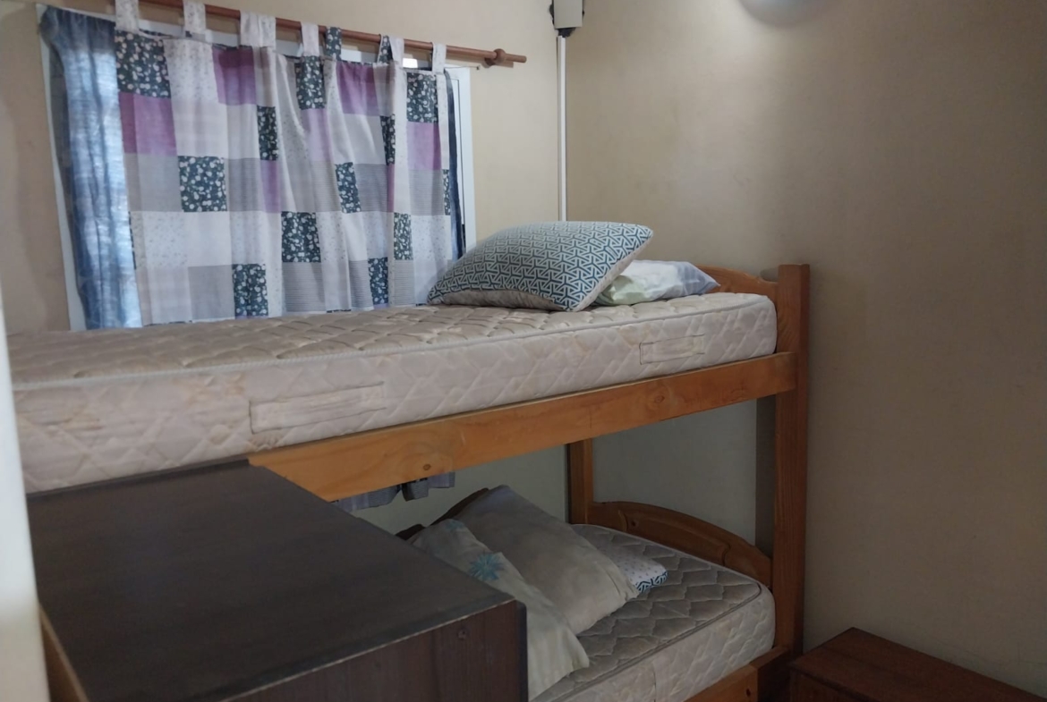 Con 60 mts2 construidos tenemos 1 dormitorio grande y 1 mas chico, baño y cocina comedor de 5 x 6.