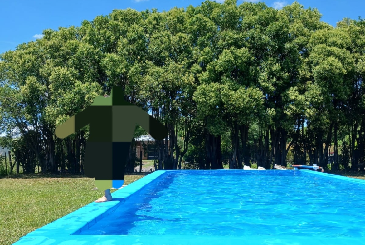 Todo el resto del lote es un parque con arboleda, cesped y una gran piscina de ladrillos.