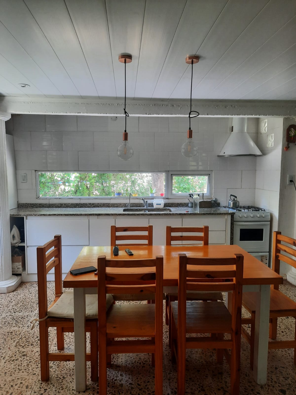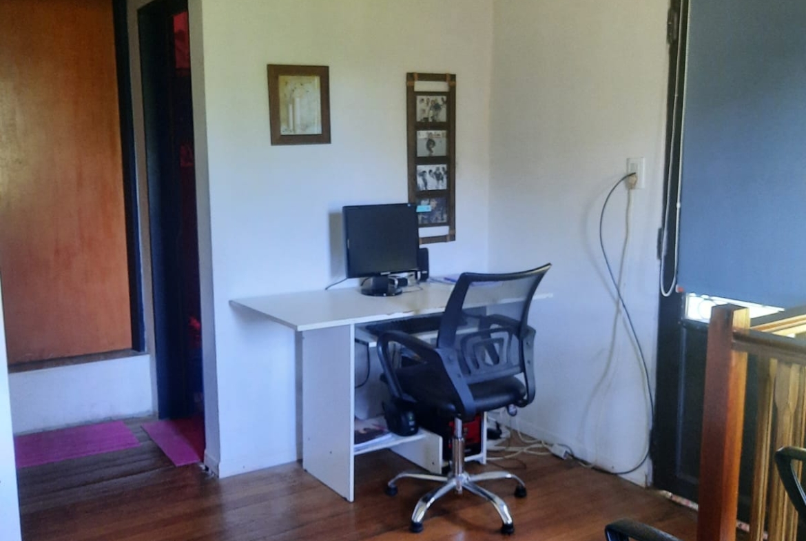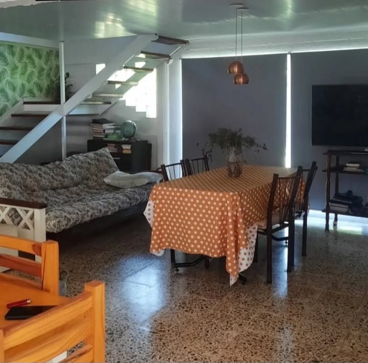 Arriba cuenta con 3 dormitorios, sala de descanso y baño, abajo cocina, living y comedor integrados con el segundo baño.
